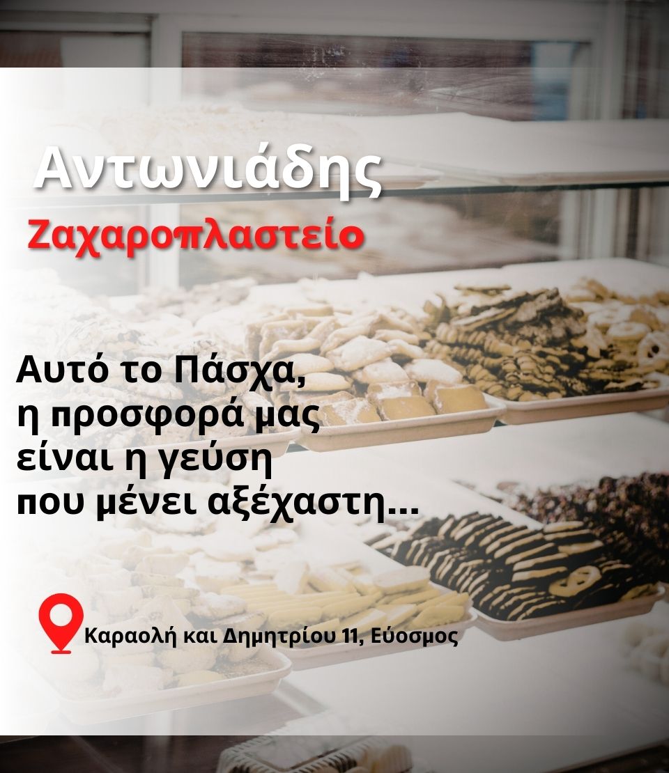 Ελάτε να γνωρίσετε τον κόσμο των αρωμάτων, των χρωμάτων και των γεύσεων που κάνουν το Ζαχαροπλαστείο Αντωνιάδης ξεχωριστό. Η γλυκιά σας απόλαυση… είναι δική μας υπόθεση!