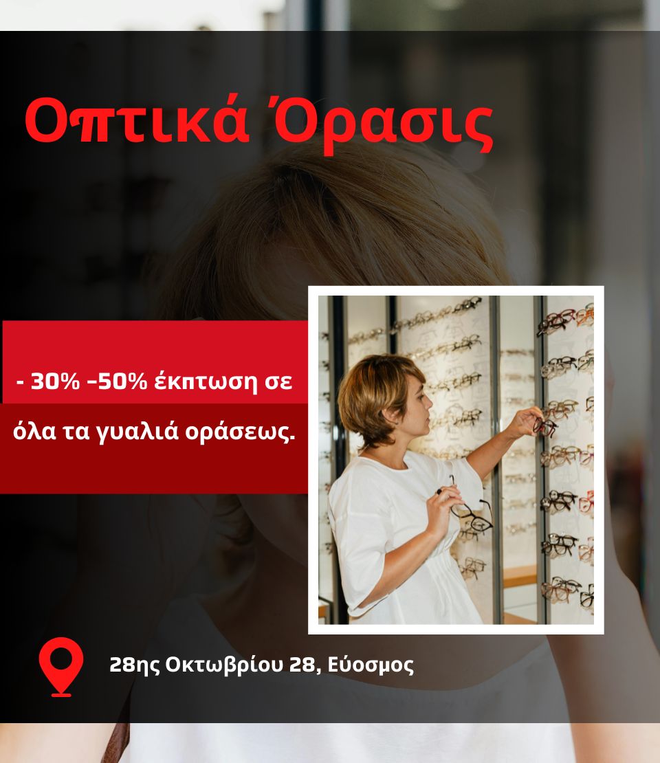 Τα οπτικά ΟΡΑΣΙΣ-ΚΑΜΠΟΥΡΗ ΜΑΡΙΑ στον Εύοσμο προσφέρει ολοκληρωμένες λύσεις οπτικής φροντίδας, με προσεκτικά επιλεγμένες συλλογές γυαλιών οράσεως και ηλίου. Με έμφαση στην ποιότητα, την αισθητική και την εξατομικευμένη εξυπηρέτηση, βοηθά κάθε πελάτη να βρει τον ιδανικό συνδυασμό άνεσης και στυλ.